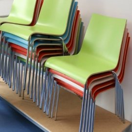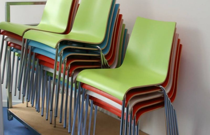 Bunte Schulmöbel nach Wunsch in jeder Farbe mit Klapptischen lieferbar.