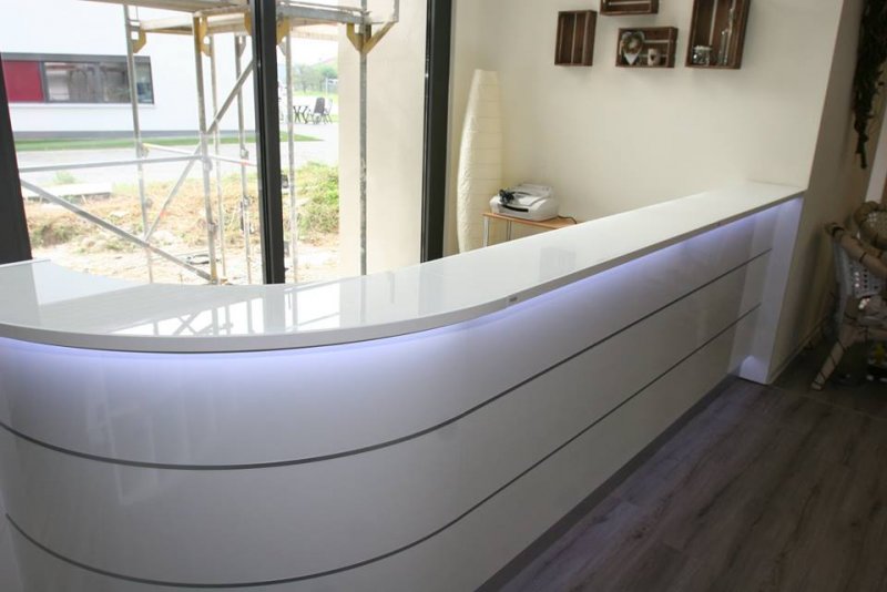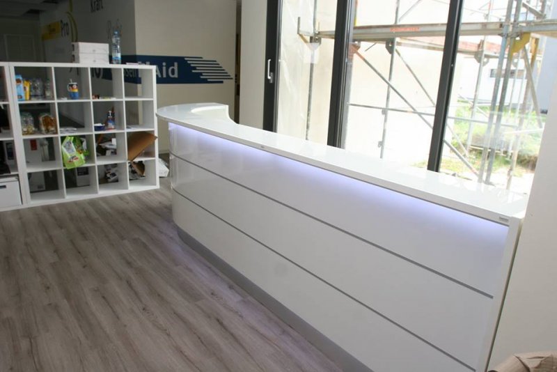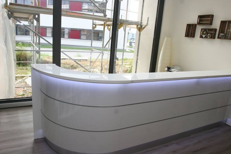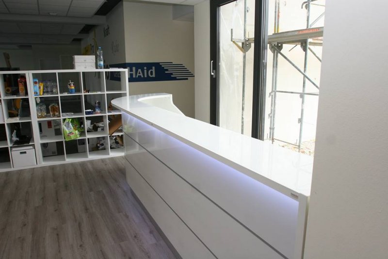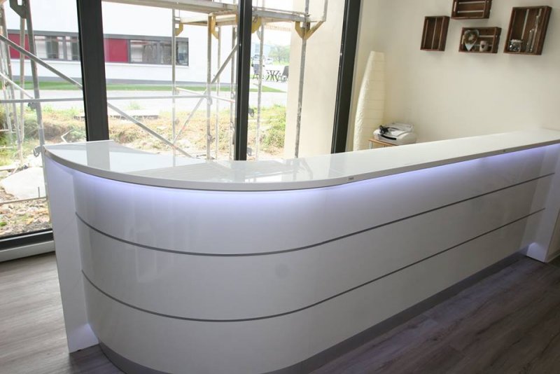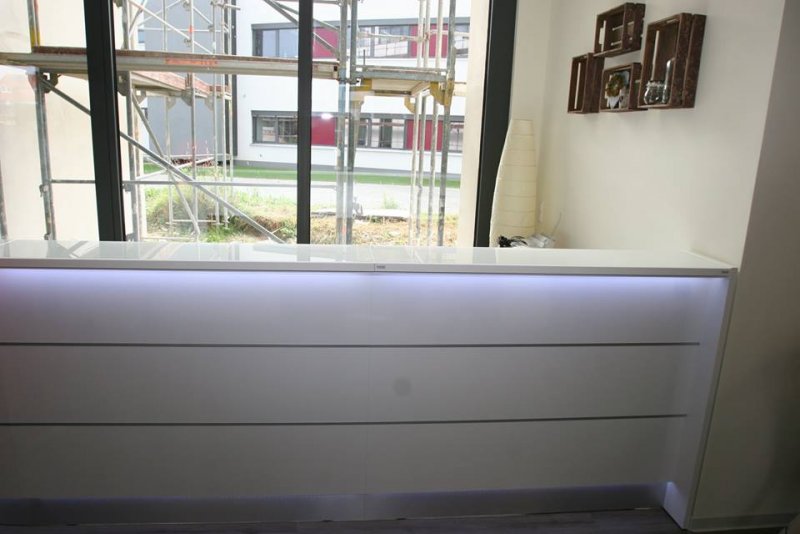 Passend zur Einrichtung haben wir eine klassische Hochglanz Empfangstheke der günstigen Fun Serie in weisser Ausführung mit den dazu passendem Rollconatainer an die Physiotherapie Praxis in Ettenheim geliefert und aufgebaut.